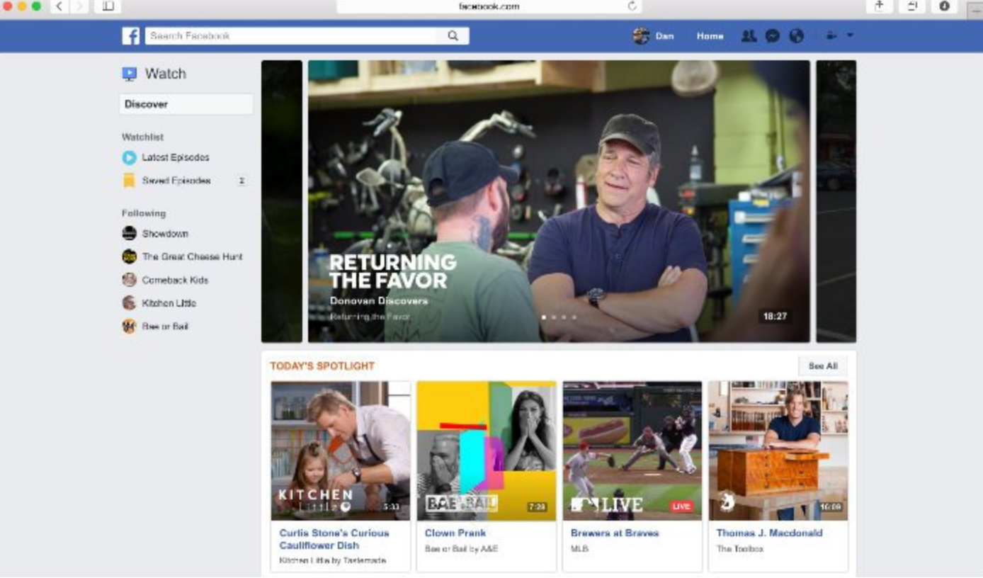 “Video hasn’t been promoted on Facebook in this way before,” said Greg Gittrich, chief content officer of Mashable. “Watch is going to be a place where people go to watch shows and series, which makes it exciting for us.”