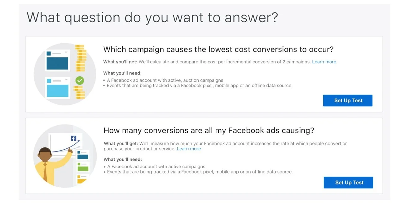 Facebook said in the blog post, “Test and Learn takes the guesswork out of measurement so you can experiment with different marketing strategies and find the one that most effectively achieves your business goals.